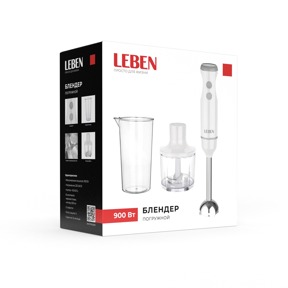 - Блендер погружной 900 Вт, 2 скорости 269049 стакан, с венчиком
