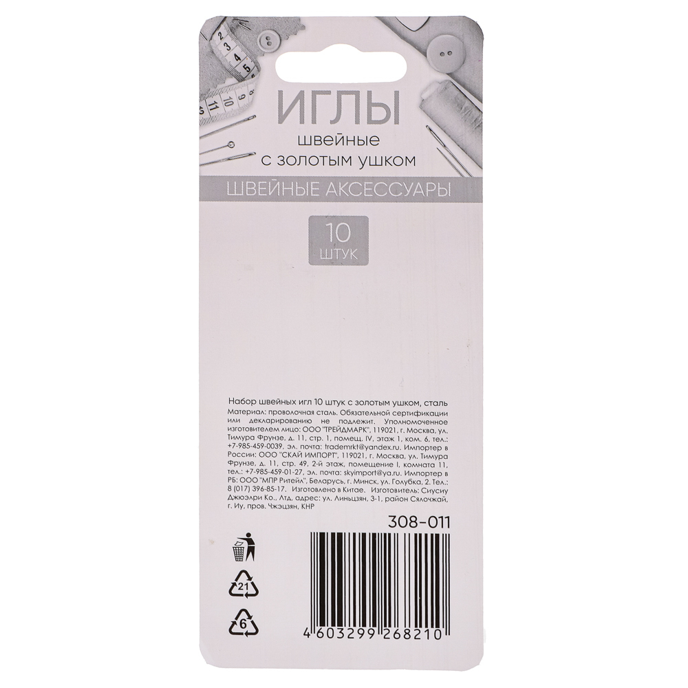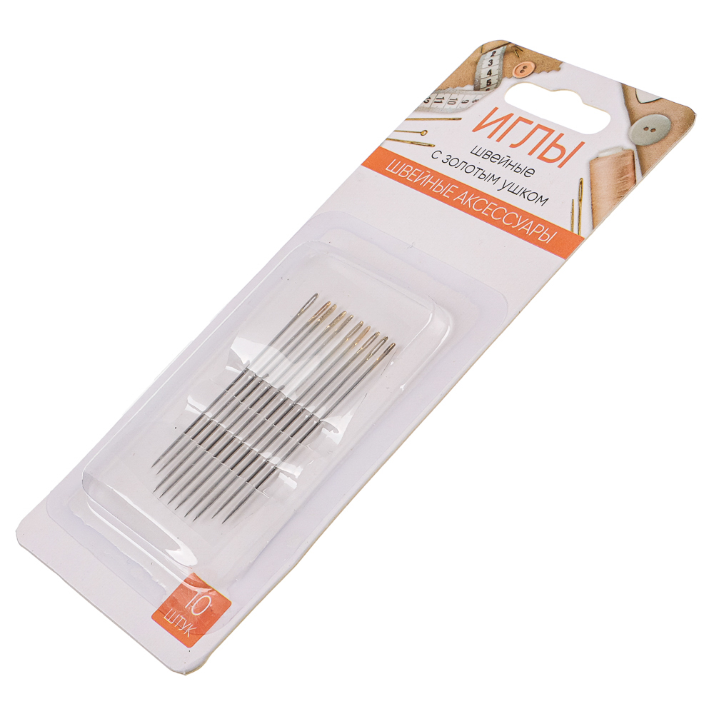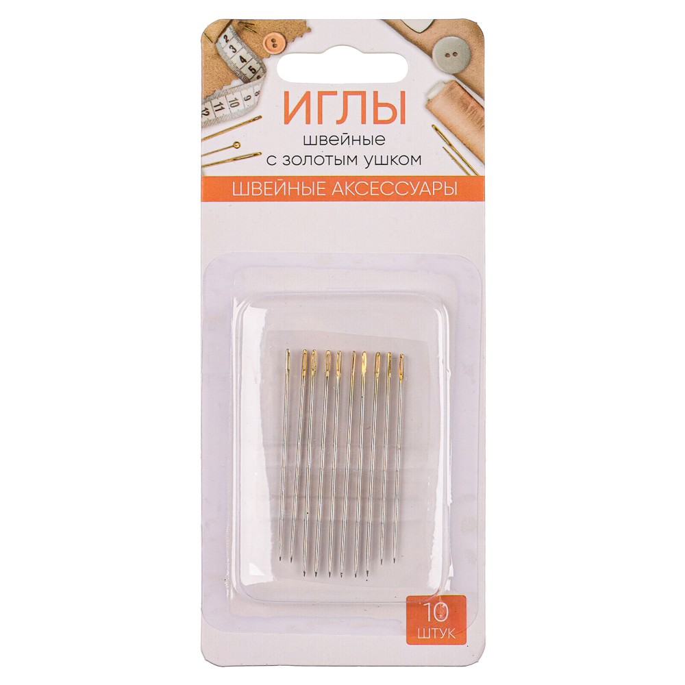 - Набор игл 10шт с золот. ушком сталь *308011