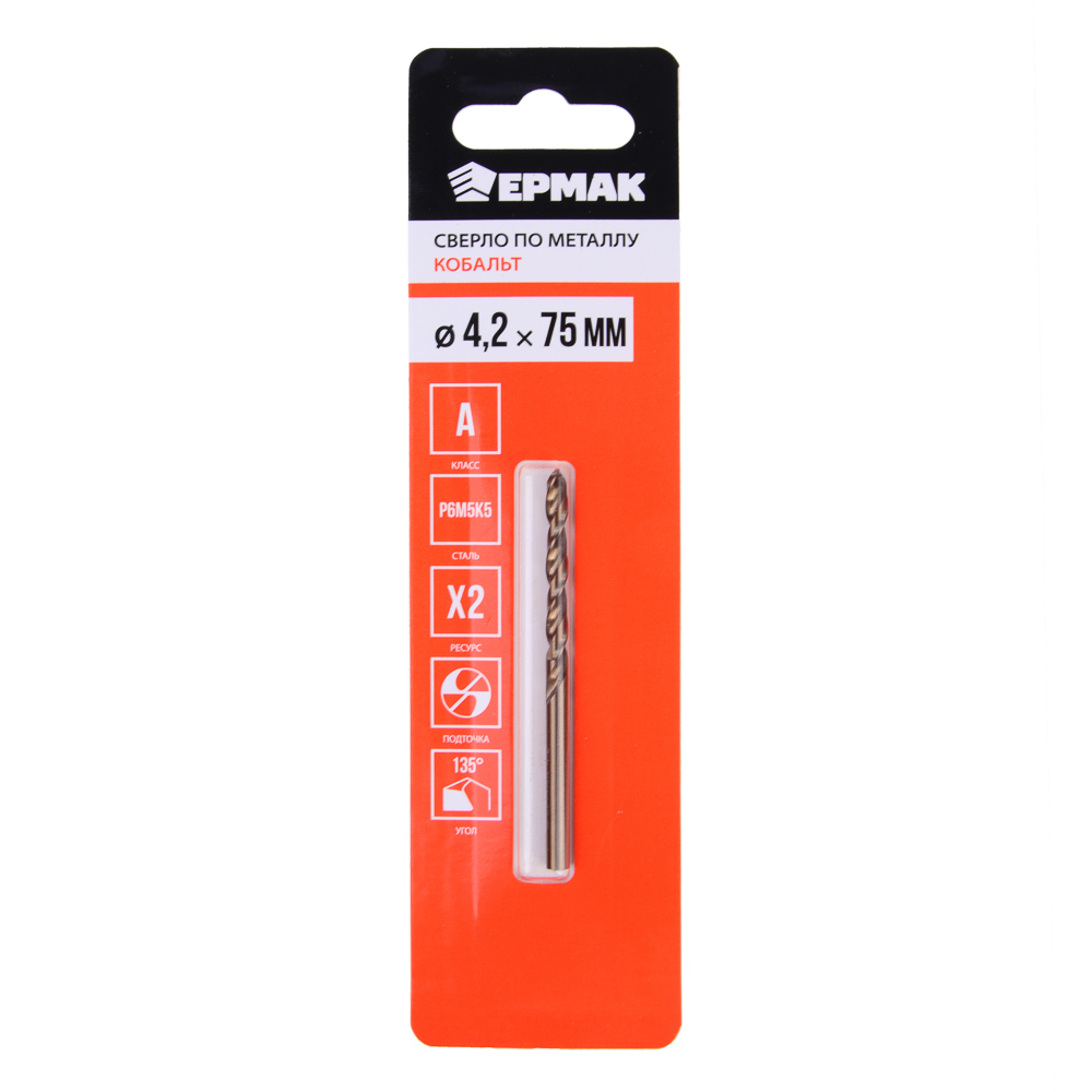 - Сверло по мет.КОБАЛЬТ 4,2ммх75мм*604034 ЕРМАК Цена за штуку