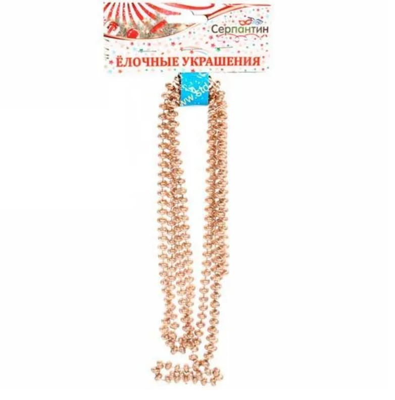- Бусы на елку 2,0 м Д-10мм Д-0,68Жемчуг*556344 шампань
