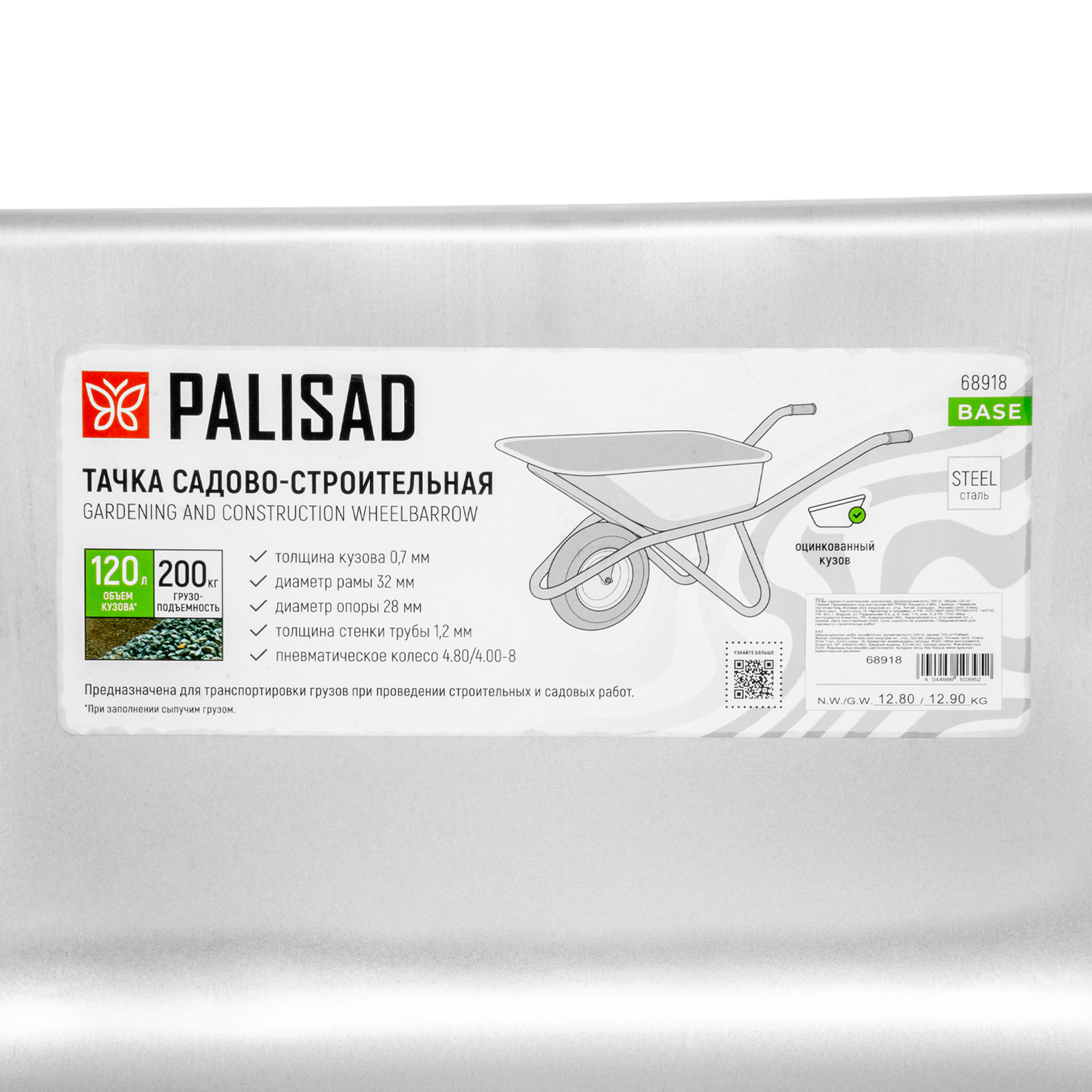 - Тачка садово-строительная 1-кол 200л/120л ПАЛИСАД зелен, кол. ораж