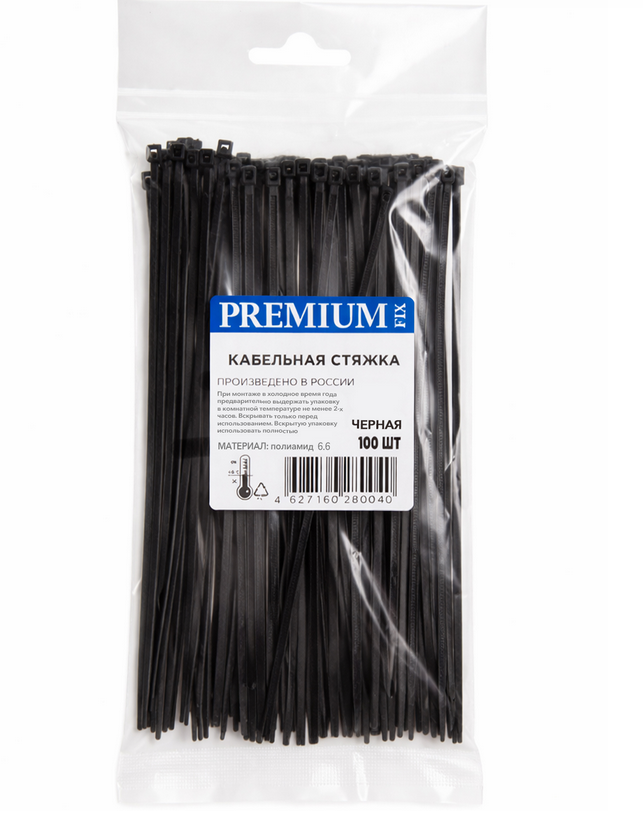 - Хомут стяжка 8*300мм*100шт пластик черный (Кабельная стяжка)
